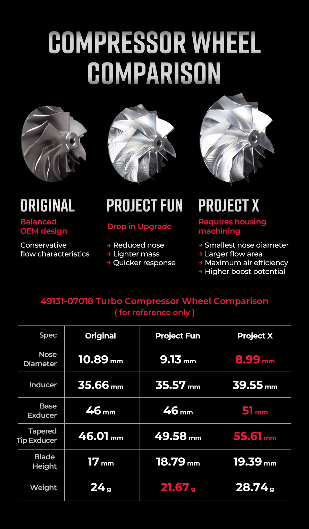 For enthusiasts who want a more responsive turbo without the hassle of machining the compressor housing-Max1 Project F billet compressor wheel is the perfect solution.